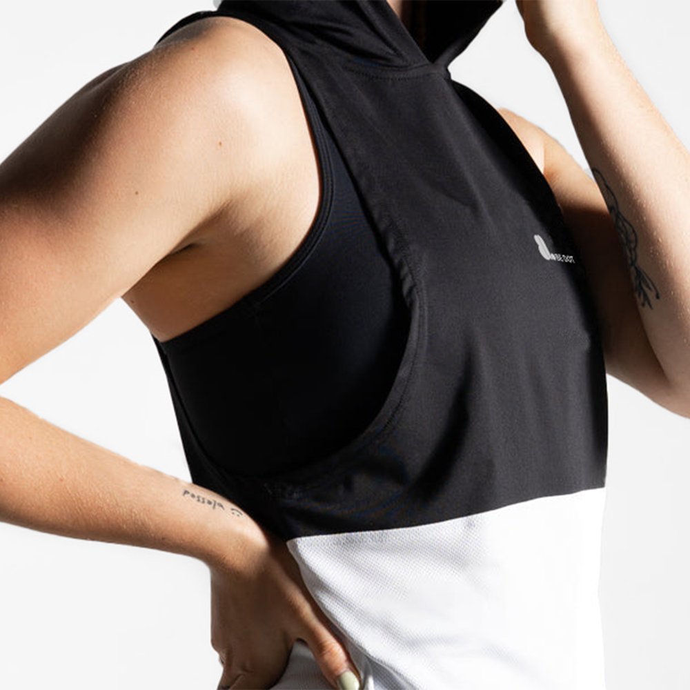 • Sleeveless hoodie design for a sporty look
