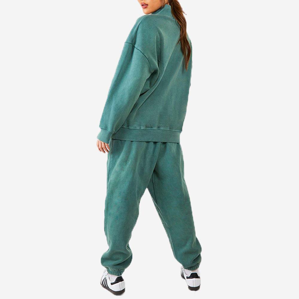 Acid Wash Zipper Track Suite Women