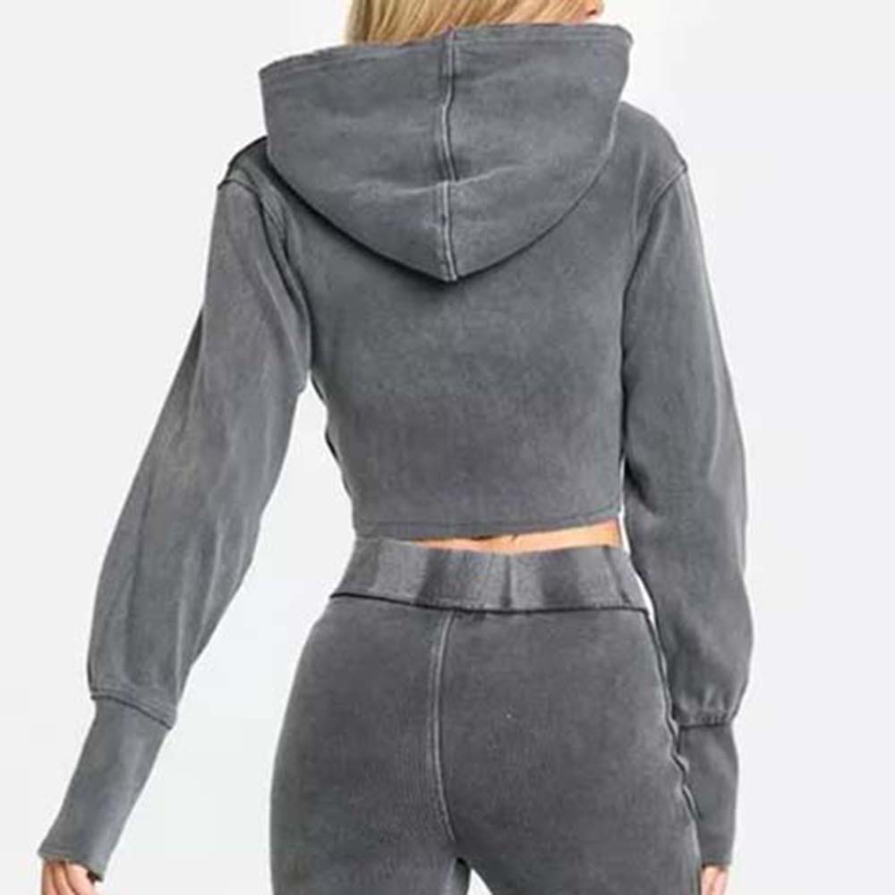 Acid Wash Zipper Track Suite Women