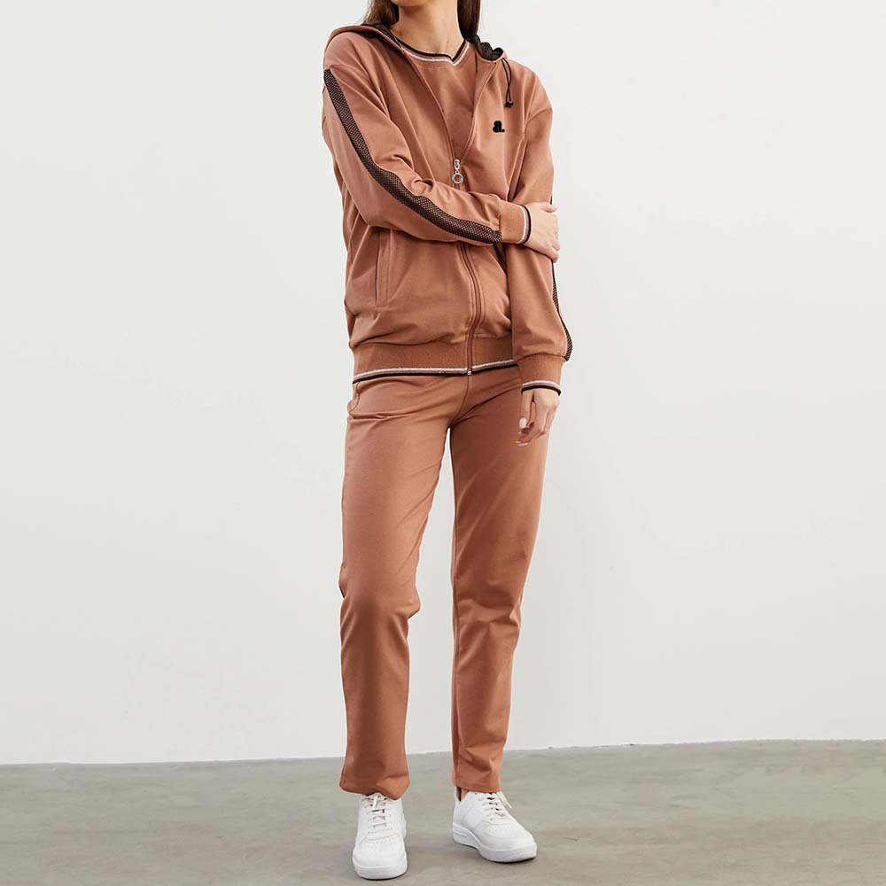 The full-zip jacket and matching track pants provide easy wear, adjustable comfort, and a flattering athletic fit. Whether you’re training, on the move, or relaxing, this track suit delivers the perfect mix of performance and modern style.