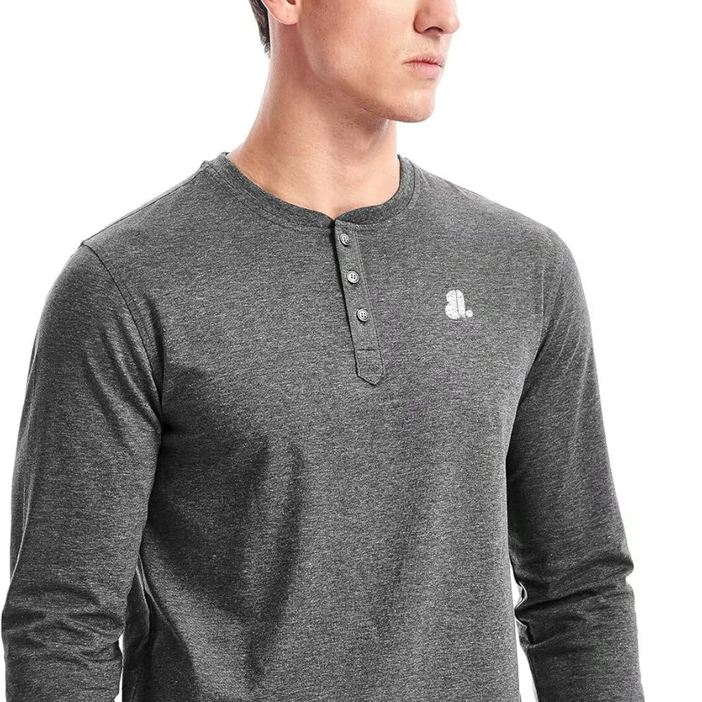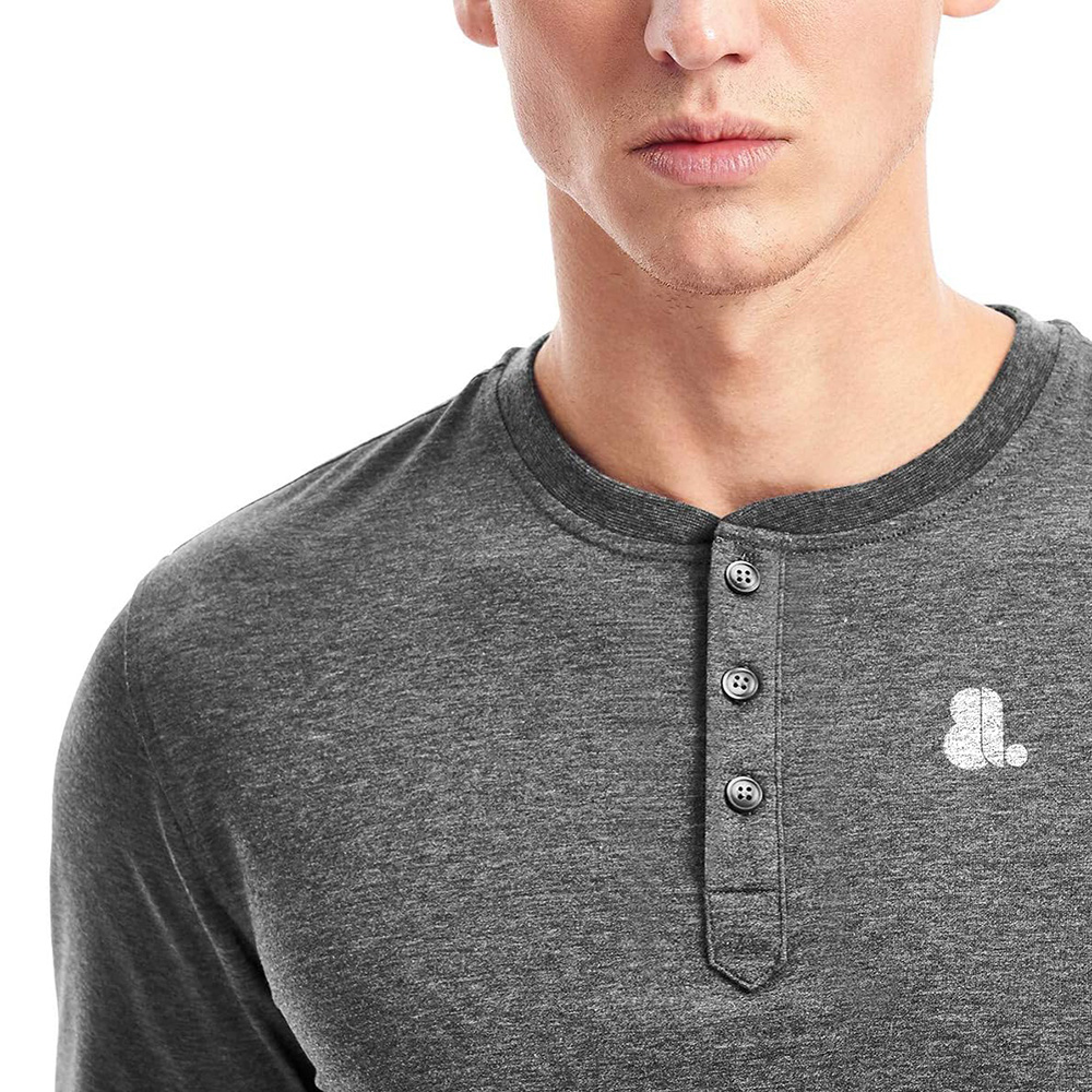 • Classic Henley neckline with button placket