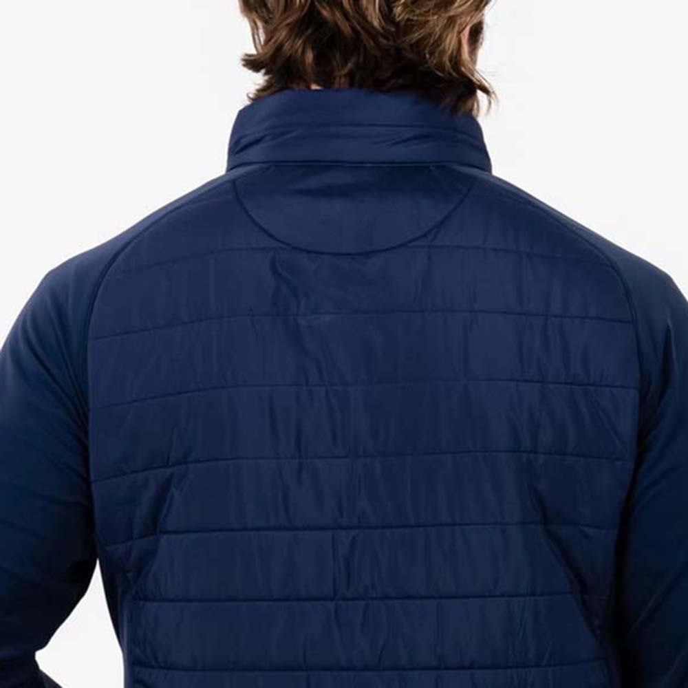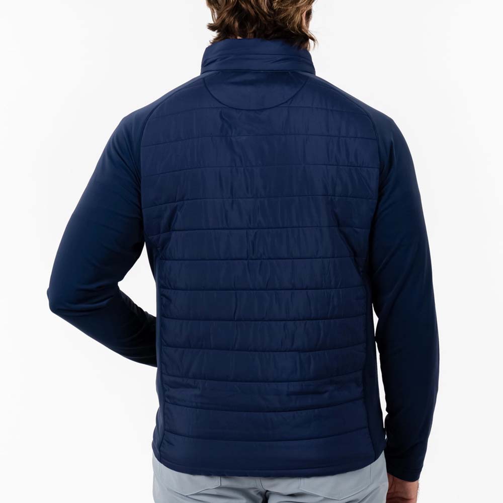 The hybrid construction blends insulated panels with stretch fabric, making it ideal for outdoor activities, travel, workouts, or casual wear. With a modern, streamlined fit, this jacket layers effortlessly over t-shirts or hoodies for a sleek, functional look.