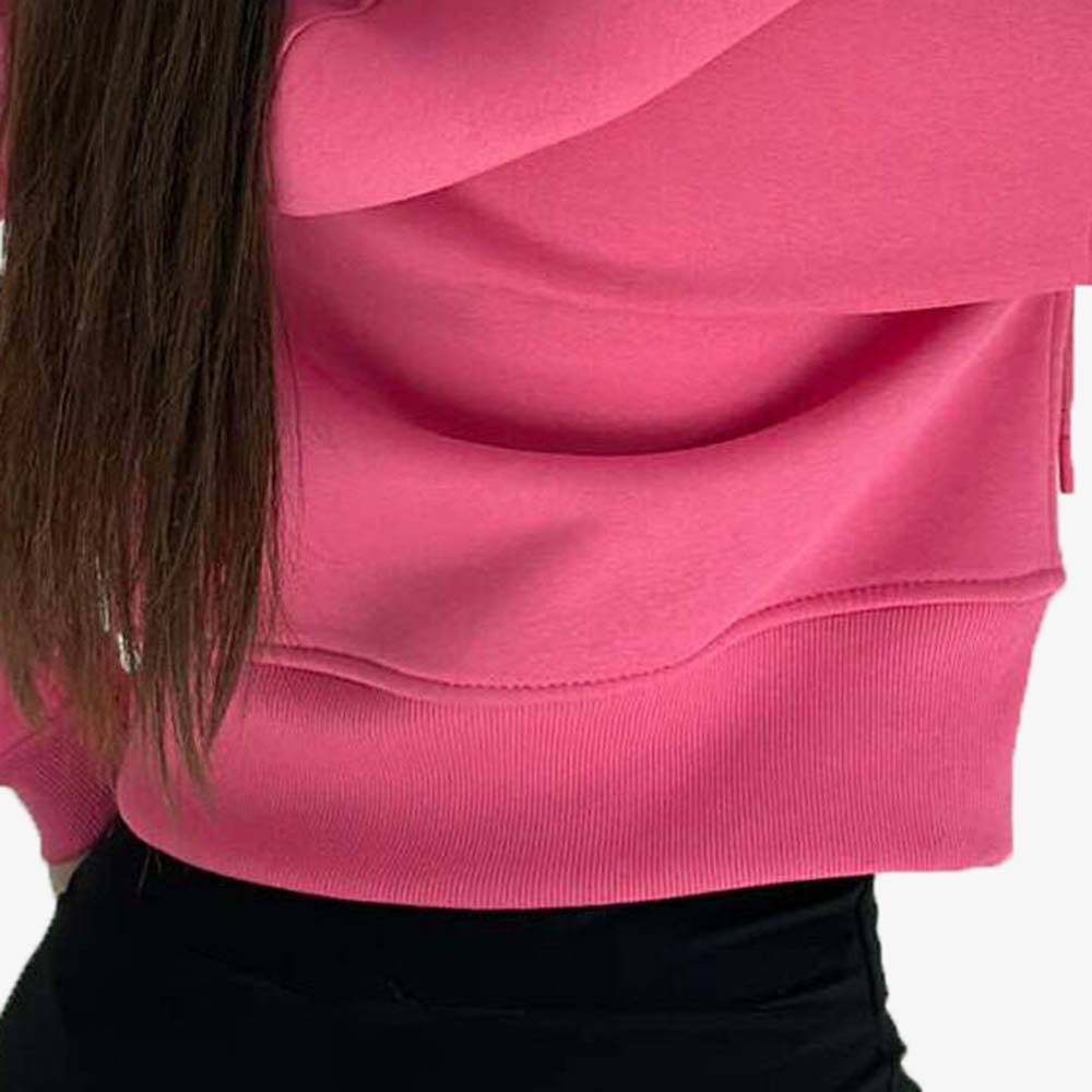 The full-zip front with an attached hood allows easy layering and adjustable coverage, while the relaxed fit ensures comfort and freedom of movement. Its timeless single-color look pairs perfectly with leggings, joggers, or jeans for casual outings, workouts, or lounging.