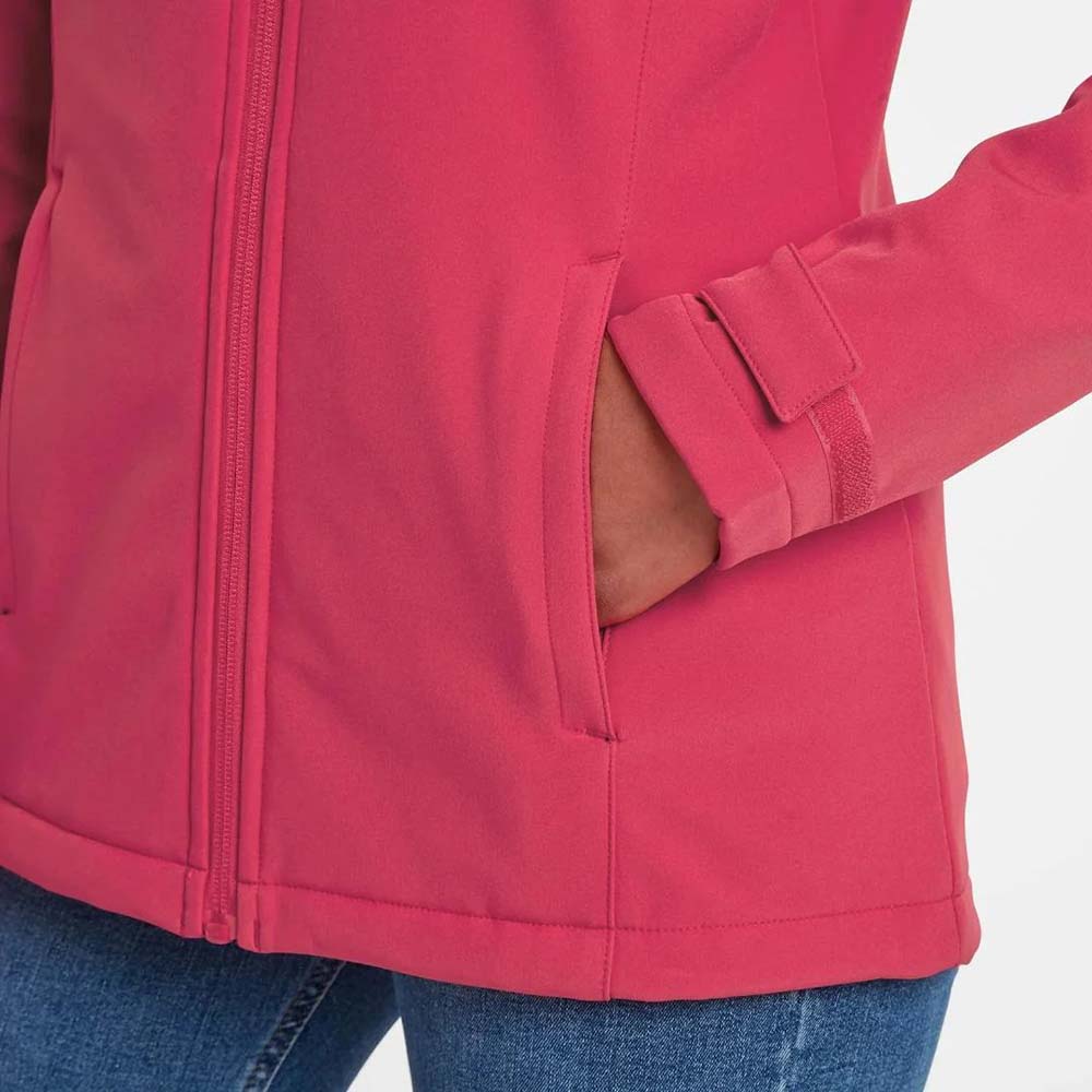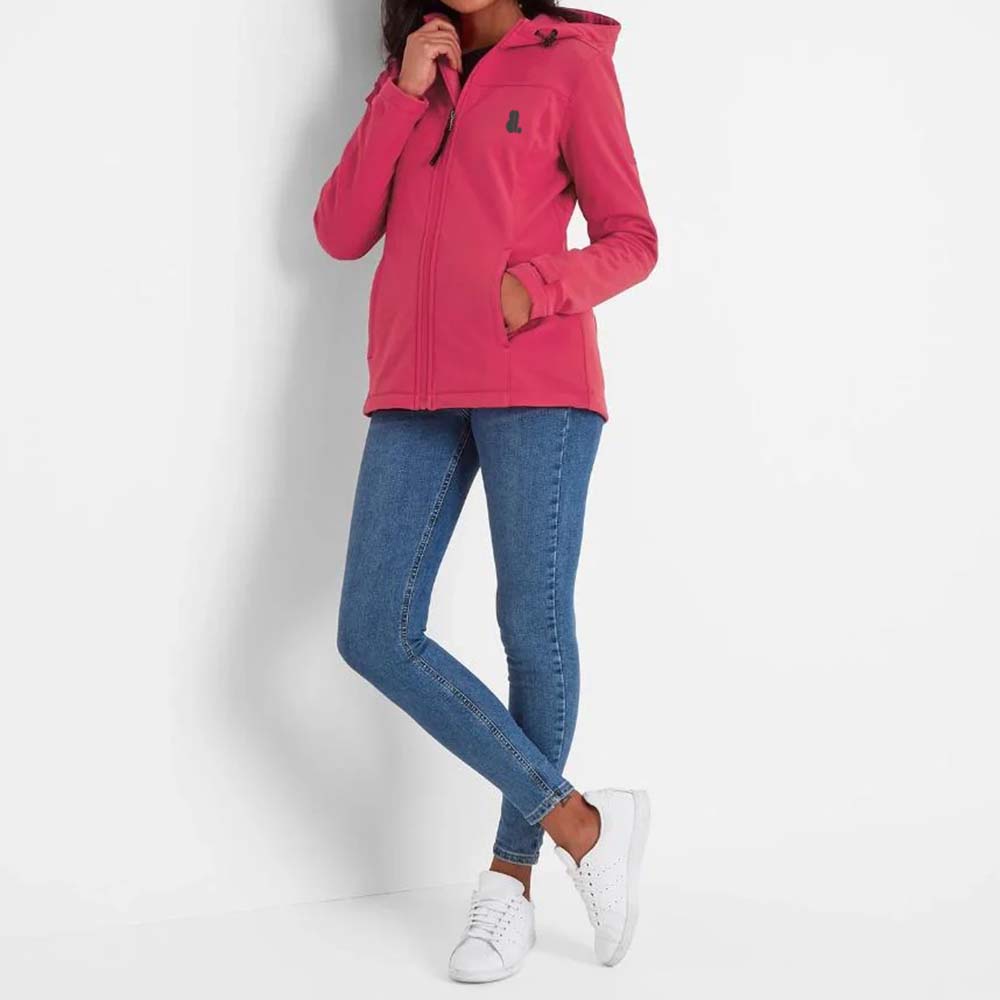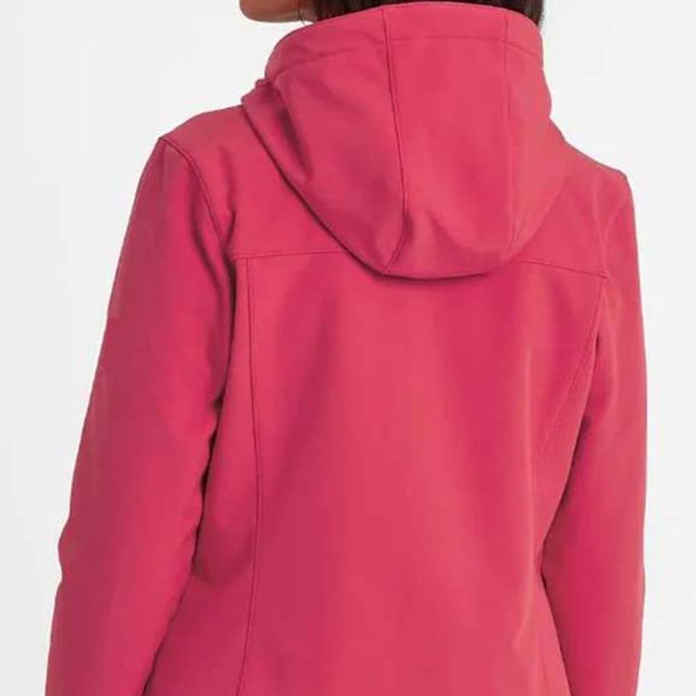 The softshell construction provides a flattering fit with unrestricted movement, while the front zip closure and hood allow adjustable coverage and layering. Ideal for hiking, sports, or casual outings, this jacket combines functionality with modern style.
